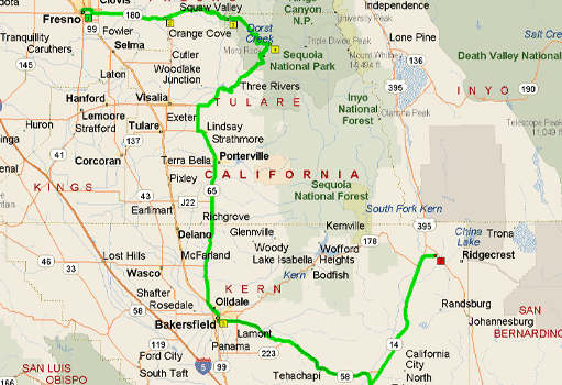 Questa mattina colazione nella hall del Best Western e poi subito a fare il pieno al vicino benzinaio. Ieri sera eravamo in riserva. Soliti 22 galloni e poi Via! Prendiamo la 180 est che porta diritti verso il King's Ntl Park. Non lo visitiamo e passiamo subito al Sequoia. Gli alberi millenari dell’altezza di 80 metri con circonferenze di 30 metri ci fanno girare la testa. Sono uno spettacolo della natura. Visitiamo tutto il parco dettagliatamente. Ci spingiamo anche fuori dal percorso segnalato per andare ad “abbracciare alcune sequoie piu nascoste”. Sono impressionanti, sia come dimensione che come costituzione. In alcune sul lato esposto a Nord addirittura la mano sprofonda nella corteccia che e spugnosissima e ricca di acqua. Ecco perche quando vengono colpite d un fulmine al 90% resistono agli incendi. Madre natura ha pensato a questo trucchetto. Dopo aver trascorso ben 4 ore nel parco ci dirigiamo alla volta di Bakersfield a sud , transitando sulla US99South. Forse chiediamo un po’ troppo alla nostra equinox quando decidiamo di arrivare fino a Inyokern alle porte della Death Valley. Con uno sforzo notevole anche da parte nostra arriviamo a Inyokern verso le 20,00. Un vento caldo e fastidioso ci accoglie quando scendiamo dalla macchina. Siamo nel parcheggio del Myfair Motel. Una mia vecchia conoscenza, essendoci stato due anni fa. E' rimasto come una volta. Il solito vecchio matto ad accoglierci, a sbraitare qualche parola in Italiano visto che sua mamma era di origini italiane... Ci accompagna alla stanza numero 1. Una matrimoniale e due letti singoli. Il tutto a 40 dollari. 10 a testa. Pazzesco. Pazzesca e la camera. Indescrivibile. Piena di fori e buchi, coperte e lenzuola non profumavano di sapone di Marsiglia... ... Il motel e sgangherato ma e' quello che fa per noi! Andiamo a riposarci presto. Domani mattina sveglia all'alba per viaggiare freschi nel deserto. Alla fine non so come ci addormentiamo.